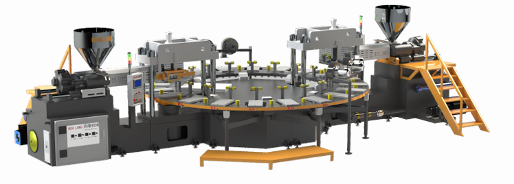 奔隆機械 | 高效節(jié)能圓盤式兩頭雙色鞋底射出成型機!